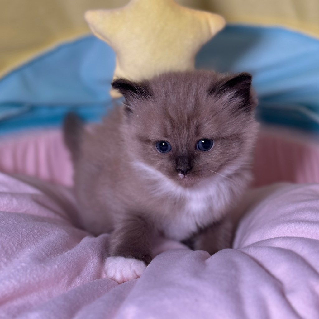 La chatterie du Berceau Étoilé est un élevage professionnel déclaré auprès de la DDPP et de la MSA de Ragdoll traditionnel (point aux yeux bleus), mais également des variantes moins répandues comme le mink, sépia, et solide.
