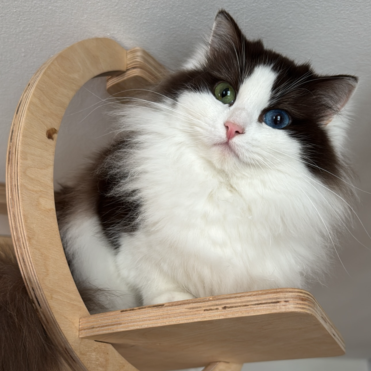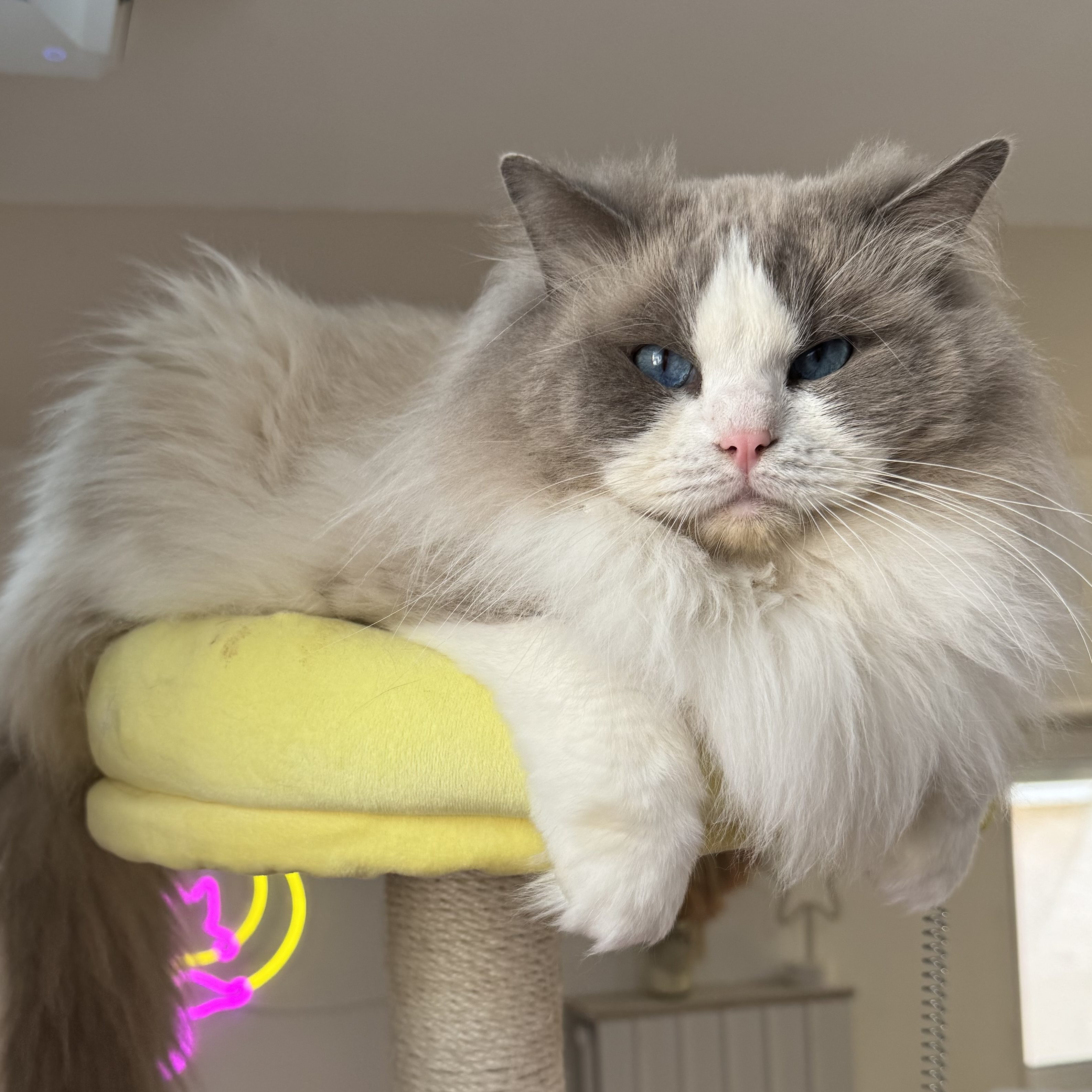 Ici pas de chats enfermés dans des espaces à part du foyer, tous nos chats naissent et vivent exclusivement avec nous dans notre maison. Nos pièces ont été aménagés spécialement pour eux en espace de vie, infirmerie, nurserie, quarantaine, et offrent tous le confort et l’attention nécessaire à leur bon développement : arbre à chats, griffoir, bulles dodos, parcours muraux et au plafond, enclos extérieur avec plate-forme pour grimper, jouets en grands nombre, multiples litières automatiques, fontaine à eau, gamelle automatique afin d’assurer une nourriture sèche à volonté, proposition régulière de viande crue. En bref nos chats et leurs chatons sont traités comme des rois.